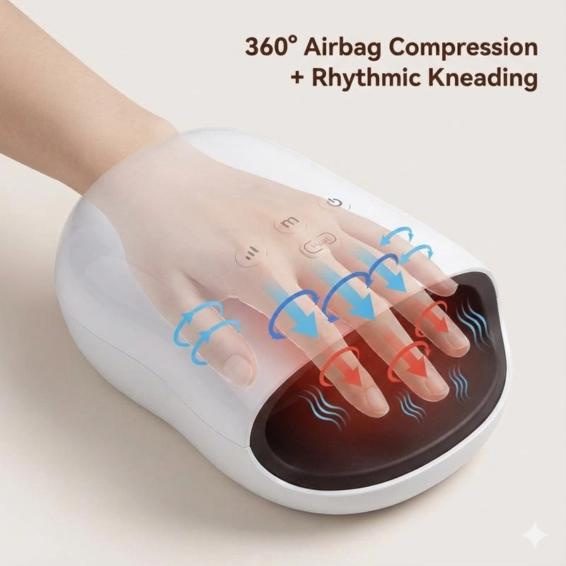 Advanced Heated Hand Massager for Finger & Joint Pain – Portable Air Compression, Airbag Kneading & Full-Palm Therapy