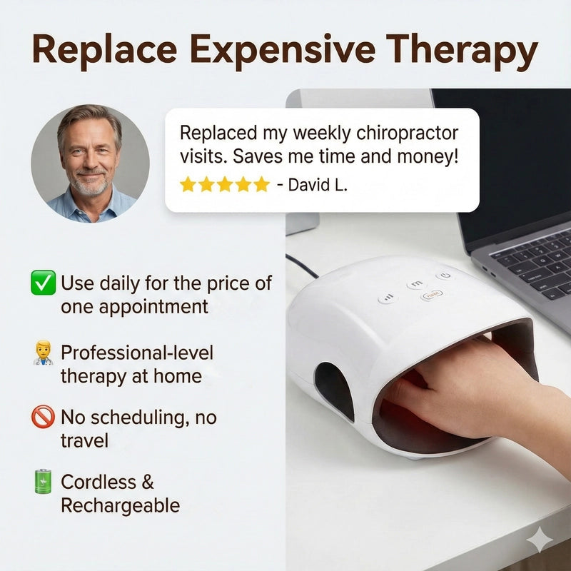 Why pay for expensive chiropractor or physical therapy appointments? . Get unlimited daily massages, heat therapy, and improved circulation for a fraction of the cost . It’s the smartest investment you can make for your hand health .