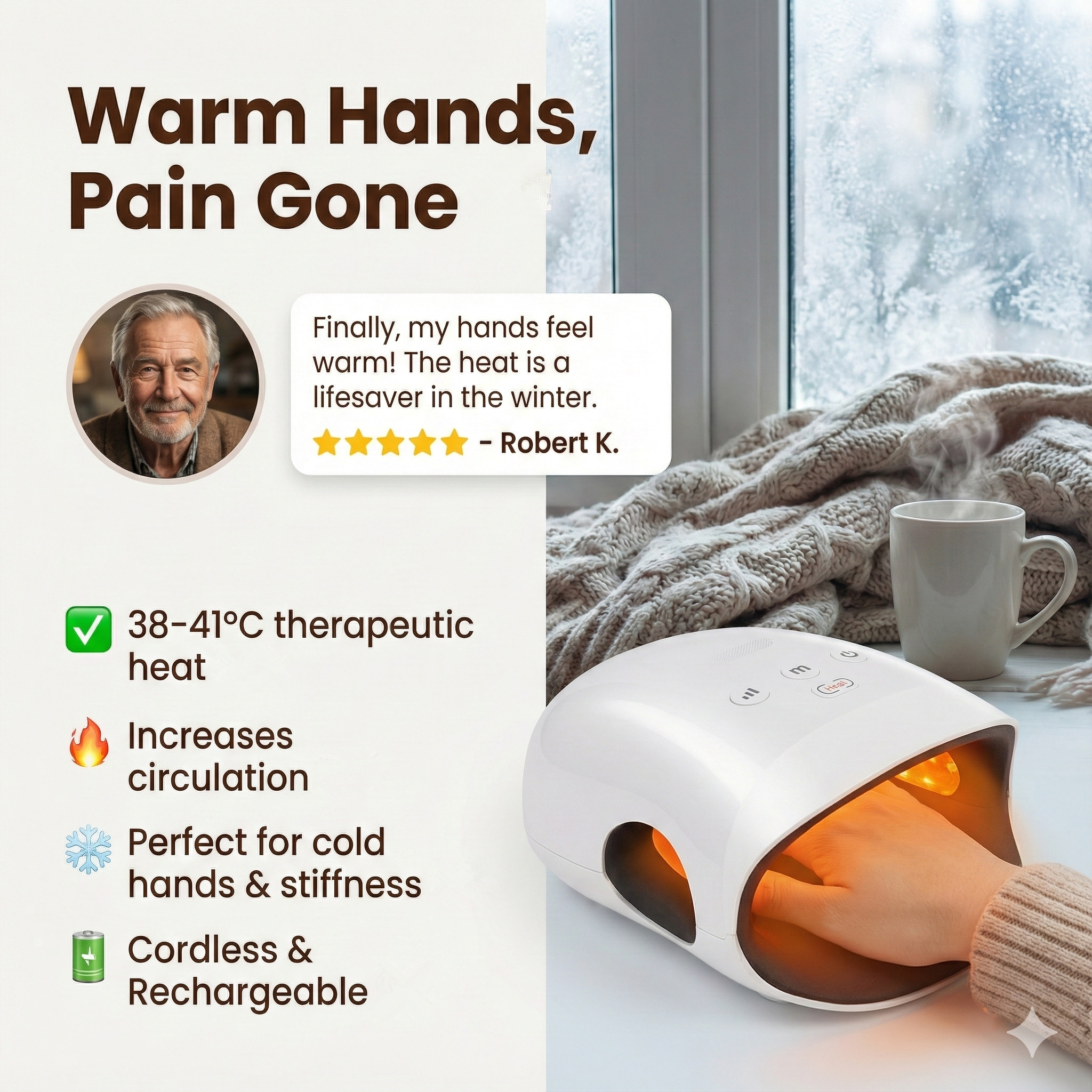 Stop struggling with stiff joints, numbness, and cold hands . Join the thousands of customers who found their "rescue" and finally achieved pain-free mobility . Order now and experience professional-quality therapy from the comfort of your home .