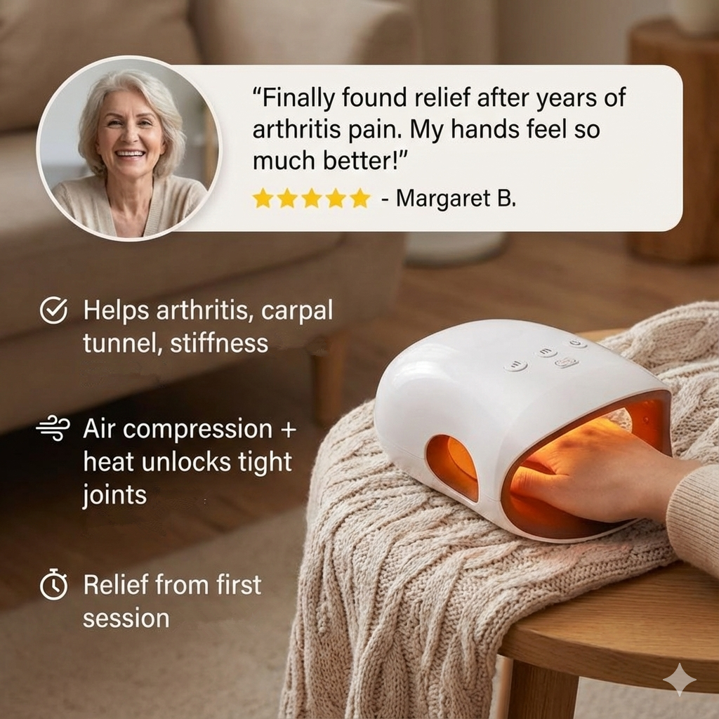Don't let finger joint pain slow you down. Our Advanced Hand Massager brings instant, soothing relief right to your fingertips, wherever you are. Regain your comfort and focus, effortlessly.