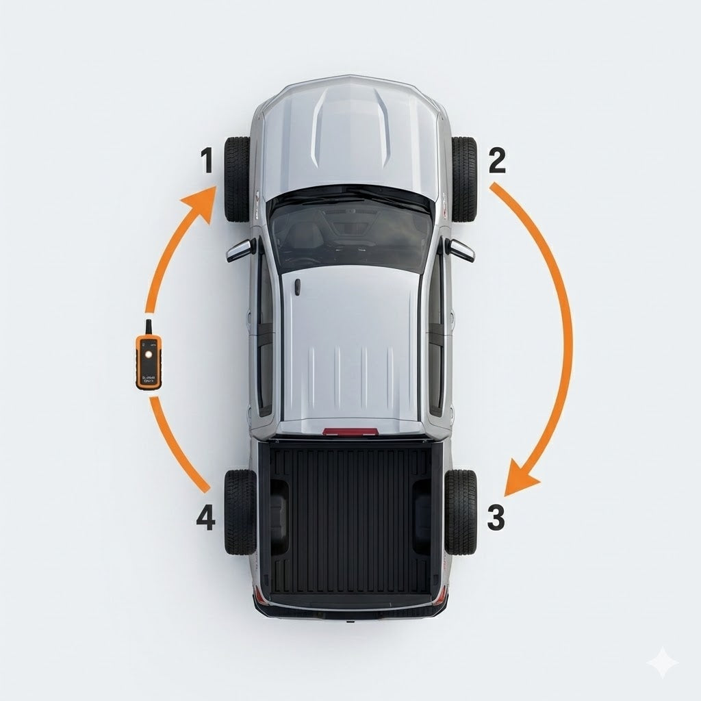 To extend the life of your tires, you rotate them every 5,000–8,000 miles. However, moving the Front-Left tire to the Rear-Left confuses your dashboard. The car still thinks that tire is in the front! The "Re-Learn" procedure updates the location of each wheel so your dashboard readings match reality.
