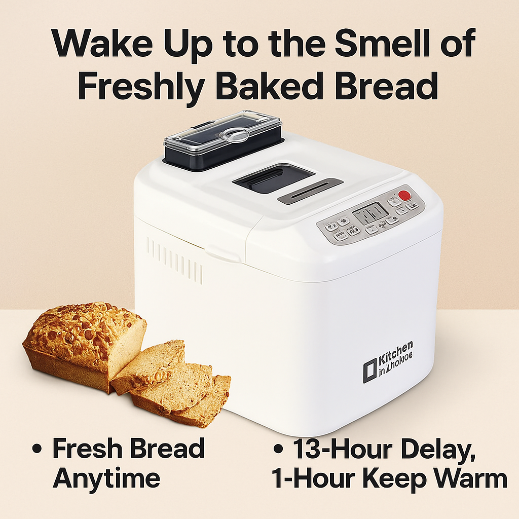Tired of store-bought bread full of preservatives? With the Kitchen in the Box Bread Maker, you can bake soft, fluffy, and healthy bread right at home. Thanks to the 13-hour delay timer and 1-hour keep-warm function, you’ll always have warm, fresh bread waiting for you—whether it’s breakfast, dinner, or a midnight snack.