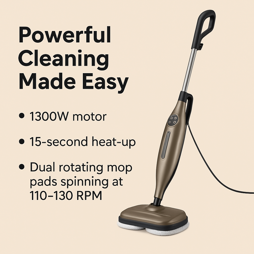 With a 1300W motor, 15-second heat-up, and dual rotating mop pads spinning at 110–130 RPM, the VM6 takes the struggle out of scrubbing. Cut through grease, stains, and sticky messes in minutes—without breaking a sweat. Lightweight and easy to maneuver, it’s the smarter way to keep your floors and surfaces shining.